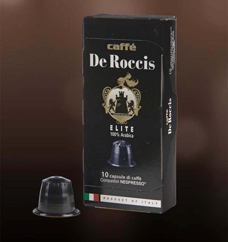 Kiváló minőségű, közép- és dél-amerikai Arabica, valamint ugandai és afrikai Robusta kávék gondos válogatása Nespresso kapszulába zárva.  A De Roccis Elite kávé keverék teljes és krémes, intenzív lecsengéssel. Igazi eszpresszó kávé sima és tartós ízzel, mogyorós és csokoládés illattal.